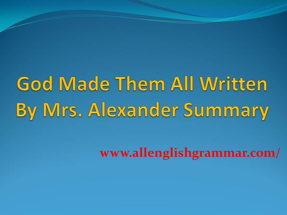 A Short Notes of God Made Them All Written By Mrs. Alexander